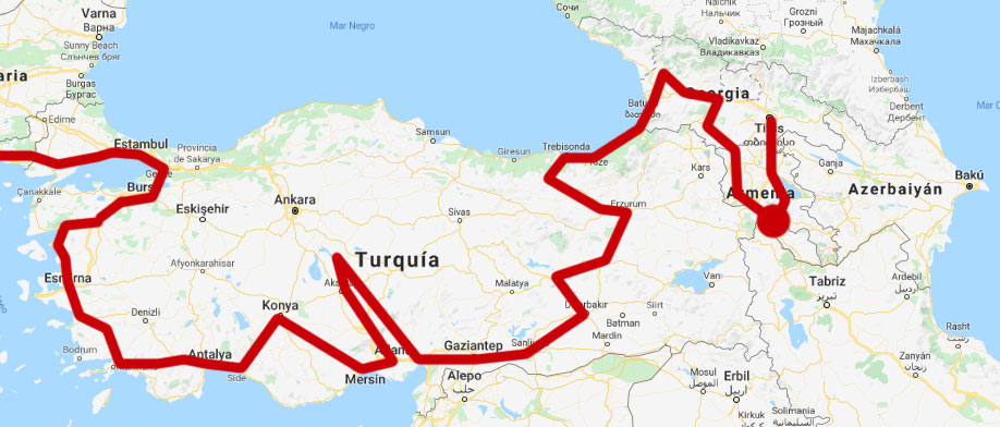 Después de un gran viaje siempre hay que dedicarle un tiempo para valorar cómo ha sido la experiencia y las conclusiones que hemos sacado de viajar de Estambul a Yerevan (3º parte del viaje). Como podéis observar la ruta inicial para viajar en autocaravana por Europa ha sido totalmente distinta a la ruta que hemos realizado (Mapa con línea azul: Planificación; mapa con línea roja: Ruta final). Vamos a considerar que Turquía, Georgia y Armenia se encuentran entre Europa y Asia.