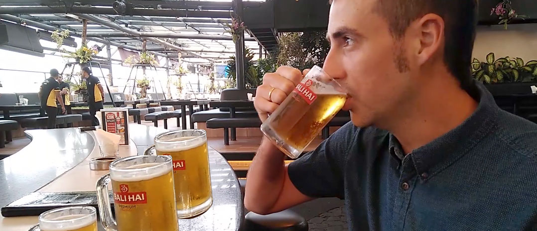 El precio del alcohol en Bali es tan elevado que, solamente con 4 cervezas en el buffet, ya habrás amortizado el dinero. Y, créeme que te vas a poner fino. Nosotros estábamos a las 17:00 como balas para amortizarlo al máximo y no perder ni un segundo sin tener una cerveza o un vodka red bull en la mano. La comida no es tan exquisita como en el Sky Garden, pero está bien: carne, pescado, vegetales, ensaladas, helado, pinchos, etc. Normalmente al principio de la tarde está muy tranquilo y se va llenando exponencialmente. Se reservan el kebab de cordero o pollo para las 19:00 de la tarde cuando hay más gente.