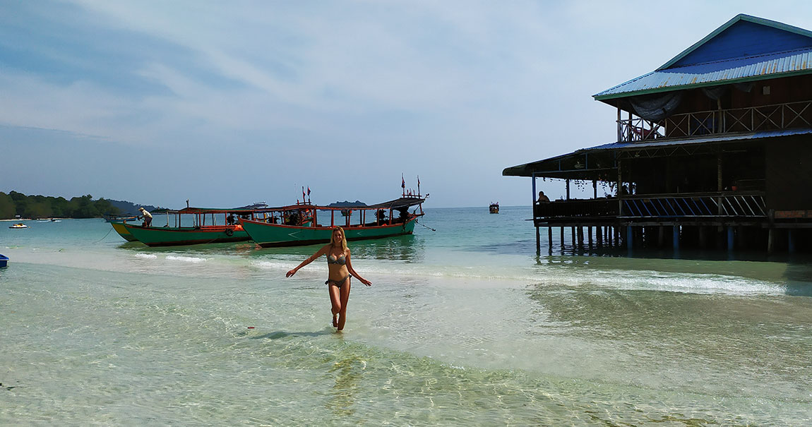 La isla de Koh Rong Samloem tiene mejores playas, agua más cristalina y es perfecta para parejas románticas, pero no tiene nada de vida nocturna, NADA. Una vez que estés cansado de la playa, o cuando caiga la noche, si buscas echar unas cervezas o unos bailes no encontrarás nada. Además, los precios son más elevados.