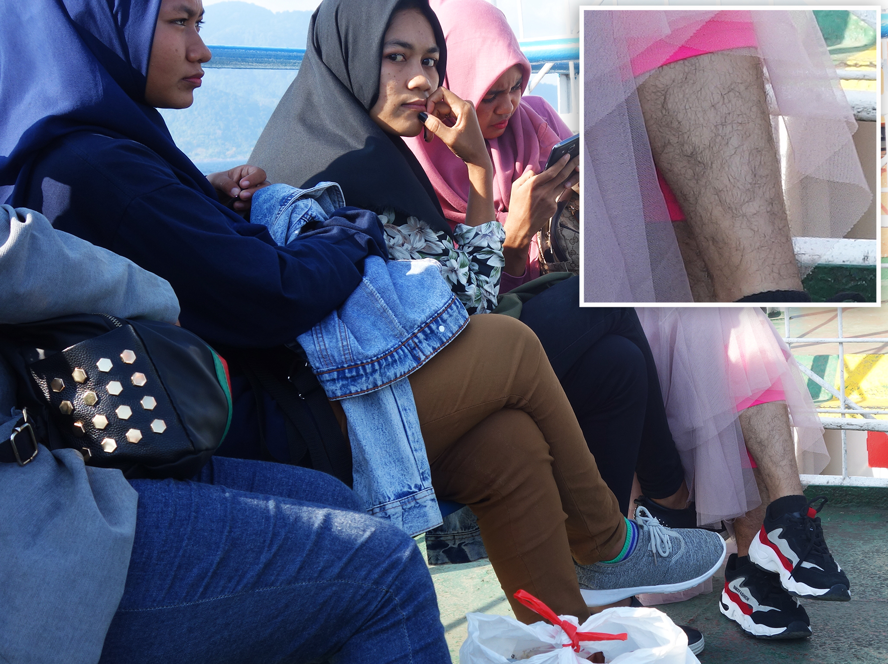 El 80% de la población es musulmana. De hecho, no hemos visto mujeres que no lleven velo (hiyab). A pesar de ir cubiertas de pies a cabeza les gusta ir a la moda, bien pintadas y conjuntadas. Sin embargo, te puedes llevar algún disgusto cuando alguna brisa marina levante sus faldas y se descubran pelambreras de oso pardo.