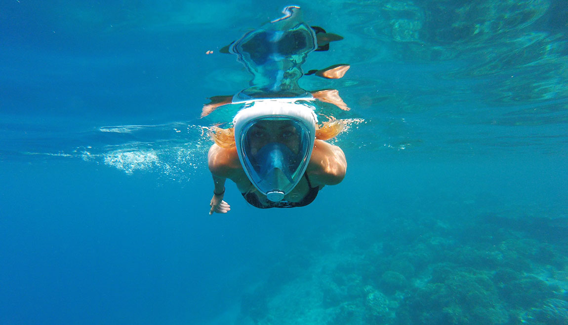 Recomendamos encarecidamente comprarse máscaras de snorkel del Decathlon. Se ajustan a tu cara por lo que no desarrollas tendinitis mandibular, puedes hablar y respirar por todos tus orificios. Además tiene un mecanismo increíble que te permite sumergirte al agua y salir a la superficie sacando el agua sin tener que quitarte la máscara. ¡Genial! Serás la envidia de los buzos.