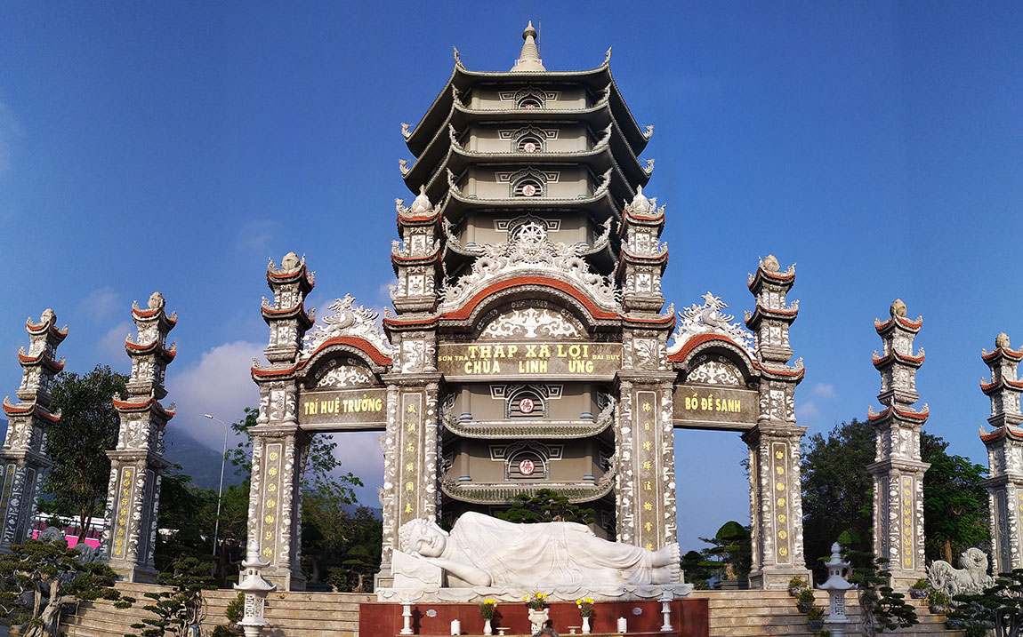 Linh Ung recrea una perfecta armonía entre la escultura moderna y tradicional vietnamita, especialmente en la entrada principal. La gente local cree que la estatua de Lady Buddha no solamente protege a los pescadores sino que les ofrece la fuerza necesaria para combatir las tormentas y fuertes olas del océano.