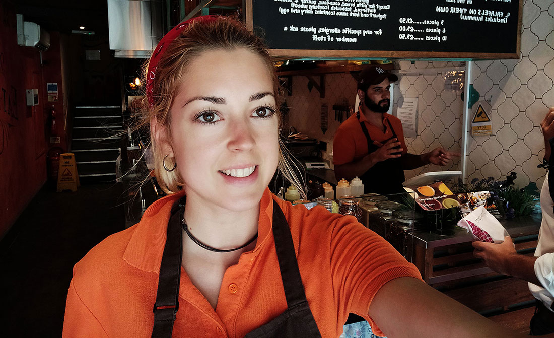 Nosotros llegamos el 1 de junio, miramos lugares que buscaban gente para trabajar, nos trazamos una ruta por la ciudad e imprimimos 15 CV. Al día siguiente hicimos una ruta por la ciudad entregándolos y, en el primer sitio que fuimos, ya conseguimos una prueba para el día siguiente. El lugar se llama Eat a Pitta (Comida rápida marroquí vegana) y nos cogieron a Álvaro en la cocina en producción y a Clara en la tienda de cara al público. Esa misma semana estábamos trabajando puesto que ya teníamos también la cita del NIN.