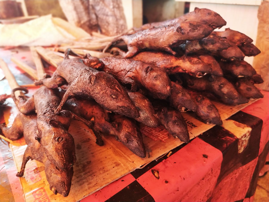 Junto al volcán de Mahawu se encuentra un curioso mercado tradicional de animales en Tomohon. Lo curioso que tiene es que venden todo tipo de animales desde hace muchos años como: murciélagos, perros, ratas, monos, etc…Cualquiera que te puedas imaginar lo ponen en venta y es cierto que a final de día se ha acabado. No queremos entrar en cuestiones sobre la defensa de los animales, puesto que esto es algo cultural que se lleva haciendo en la ciudad desde siempre. No obstante, hemos de decir que se nos quedó bastante mal cuerpo y, sobre todo, nos dieron mucha pena los perros. Seguramente porque somos más capaces de captar sus emociones que de cualquier otro animal.